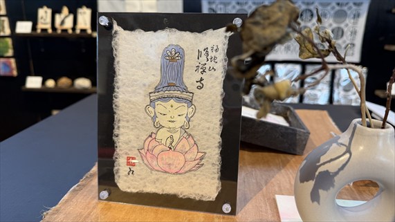 弊社制作の楮落水紙を用い、修禅寺の大日如来像を描いた作品となります。